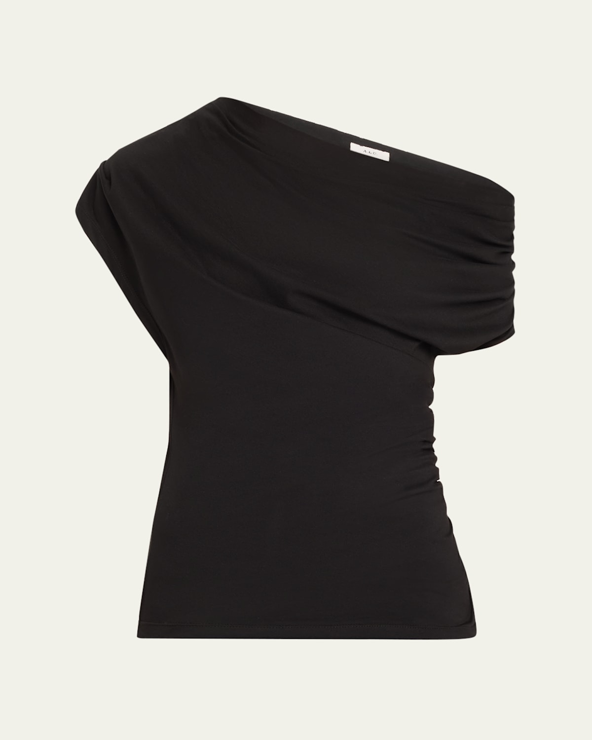 A.L.C. "Alice" draped tee with ruching Oneshoulder neckline Sleeveless Slim fit Hem sits at the hip Pullover style Cotton Dry clean or machine wash cold Made in USA from imported materials