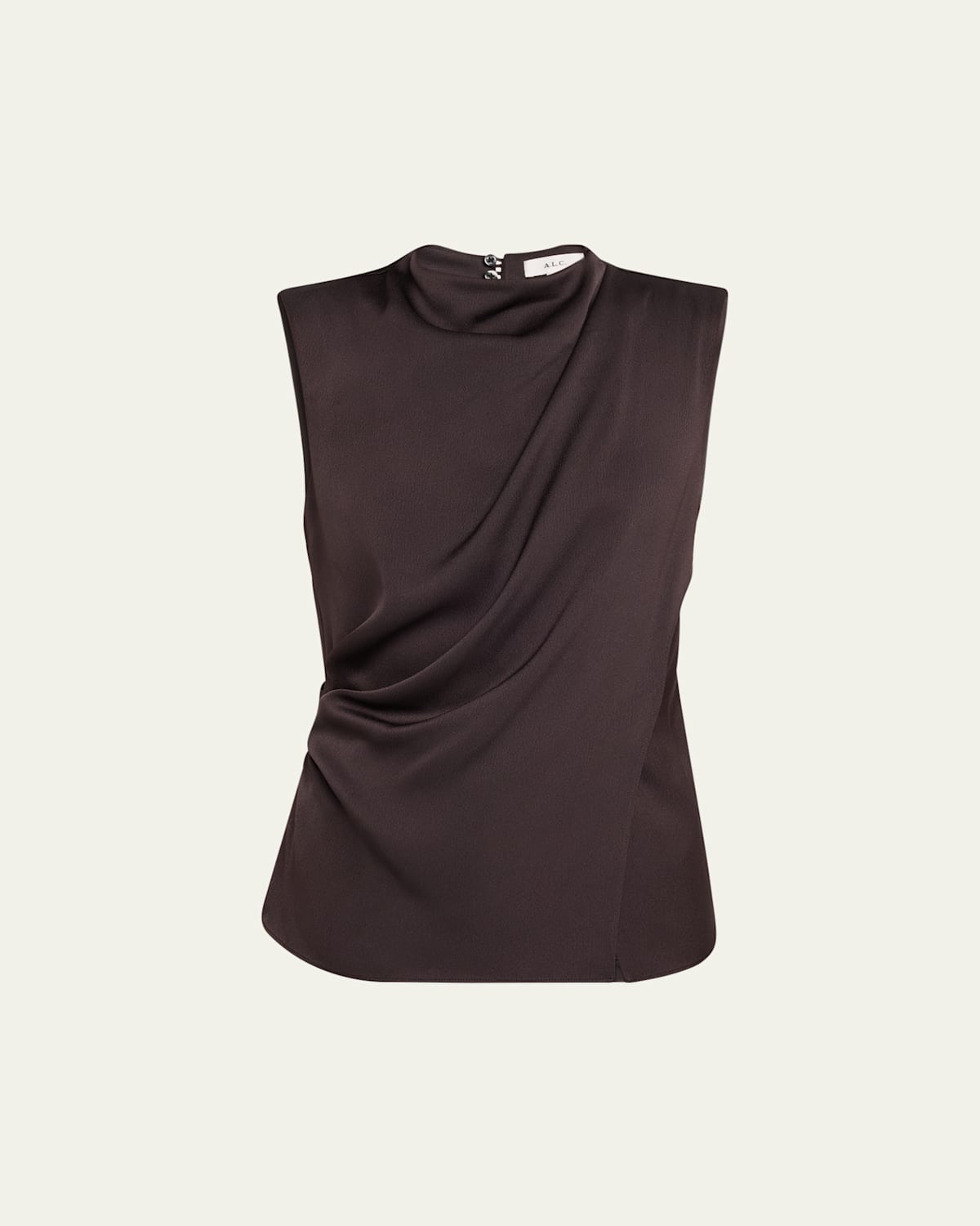 A.L.C. "Amira" top featuring draping and a layered front detail Cowl neckline Sleeveless Slim fit Button/keyhole back Acetate/polyester Dry clean Imported