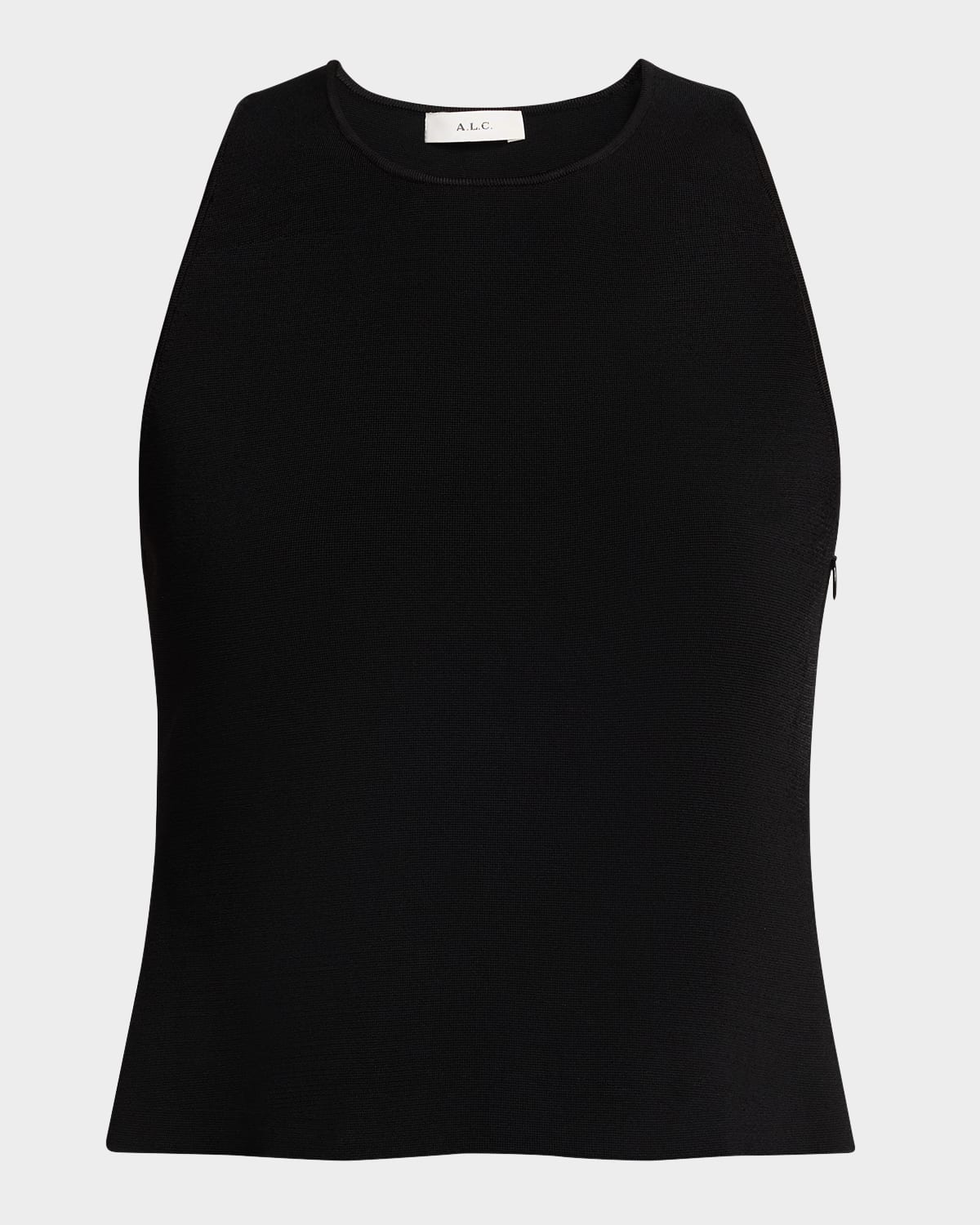A.L.C. "Belle" solid crop top Crew neckline Sleeveless Racerback Fitted Hem sits at the hip Invisible side zip Nylon/polyamide/elastane Dry clean Imported