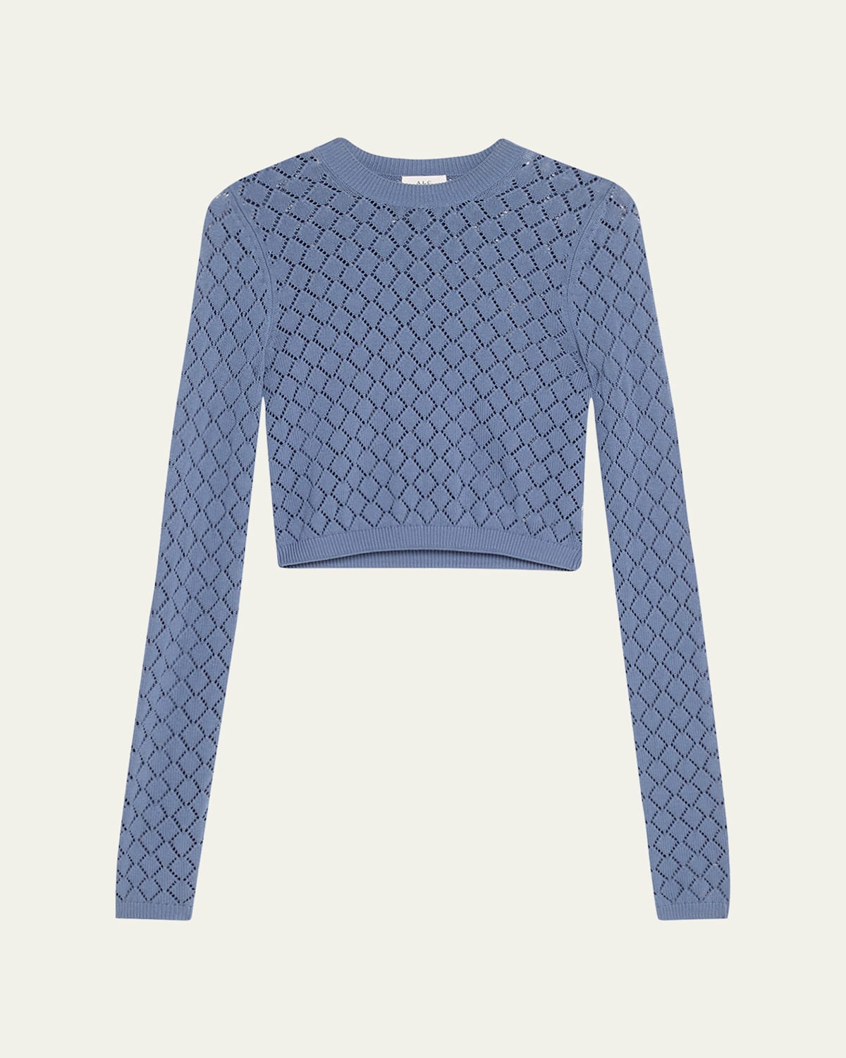 A.L.C. "Brandi" top crafted from a soft cottonsilk pointelle fabric Crew neckline Long sleeves Cropped fit Ribbed hem Pullover style Cotton/silk Dry clean Imported
