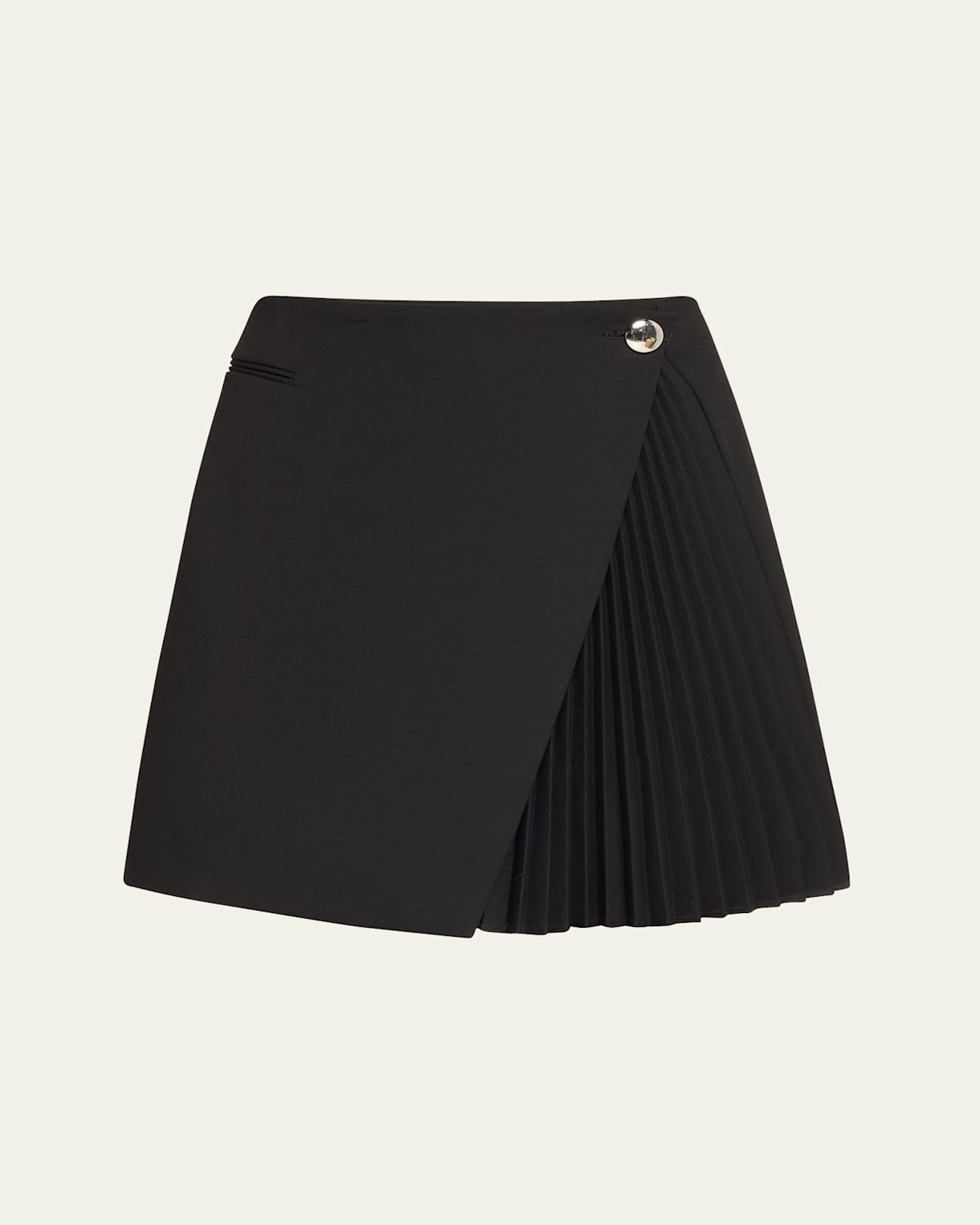 A.L.C. "Callen" mini skirt with pleated detail Midrise; sits high on the hip Hem falls above the knee Aline silhouette Side button closure Polyester/viscose/elastane Lining: Polyester/elastane Imported