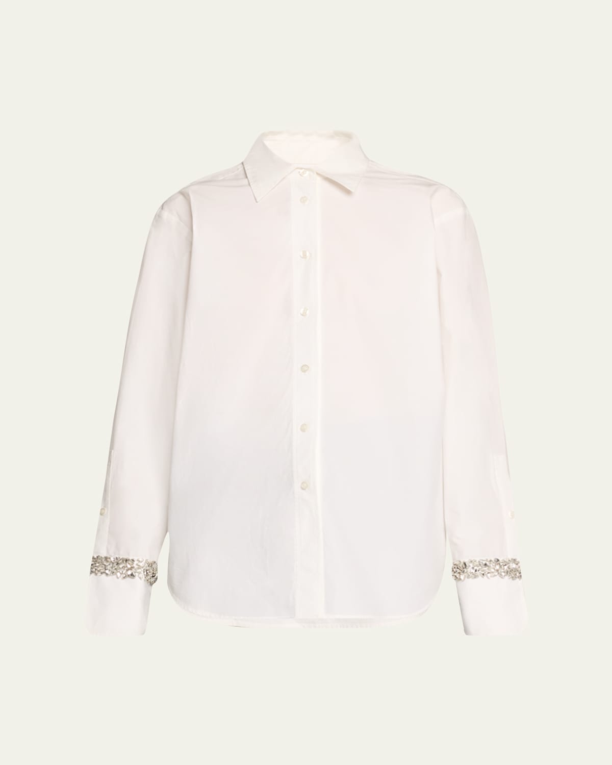 A.L.C. "Calvin" classic cotton top featuring crystal embellishment at the sleeves Point collar Long sleeves with button cuffs Relaxed fit Rounded hem Buttonfront Cotton Dry clean Imported