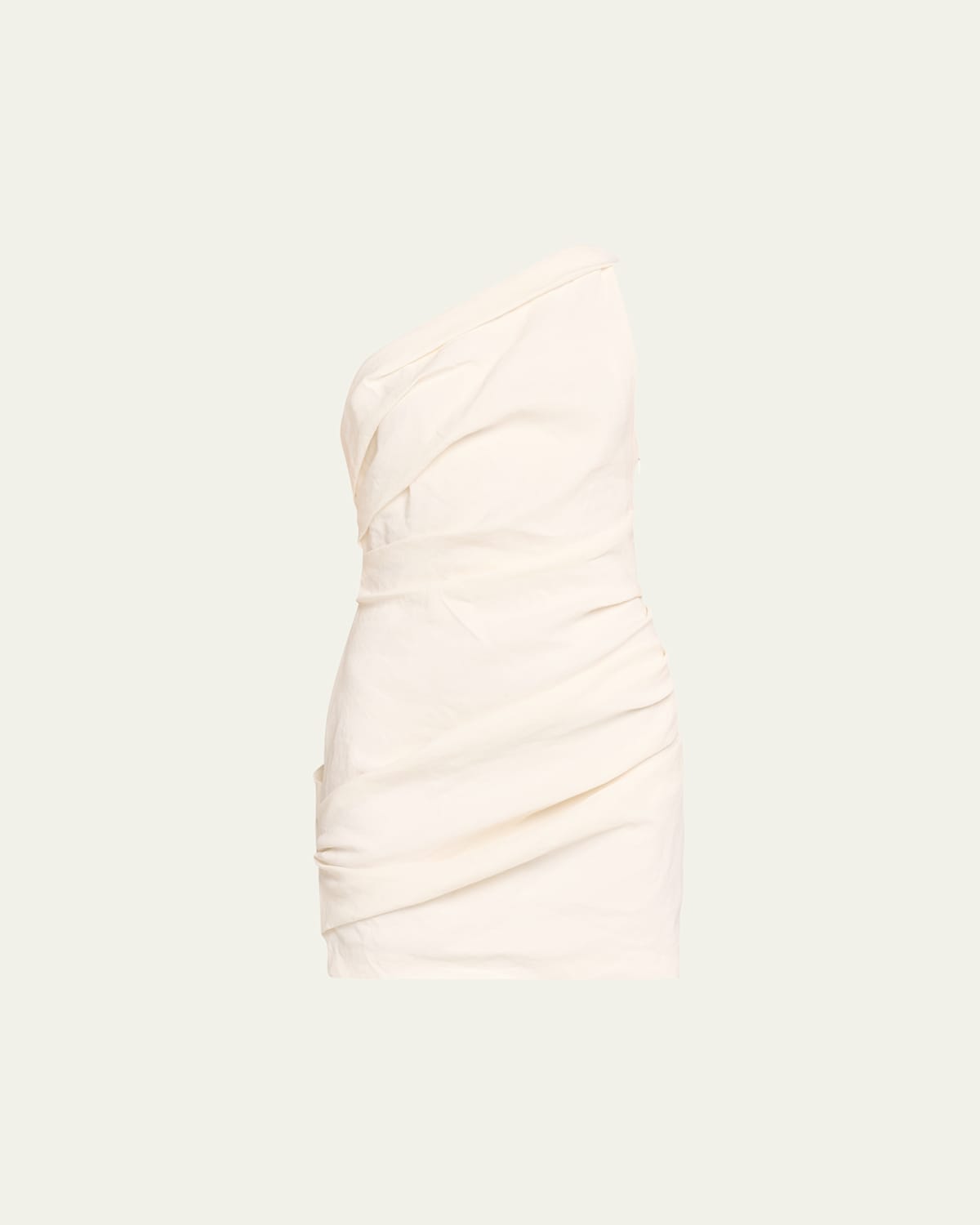 A.L.C. "Carina" mini cocktail dress defined by asymmetric gathering Approx. 32"L from shoulder to hem Oneshoulder neckline Sleeveless Hem falls above the knee Sheath silhouette Side zip closure Linen/viscose/elastane Lining: Polyester Dry clean Imported