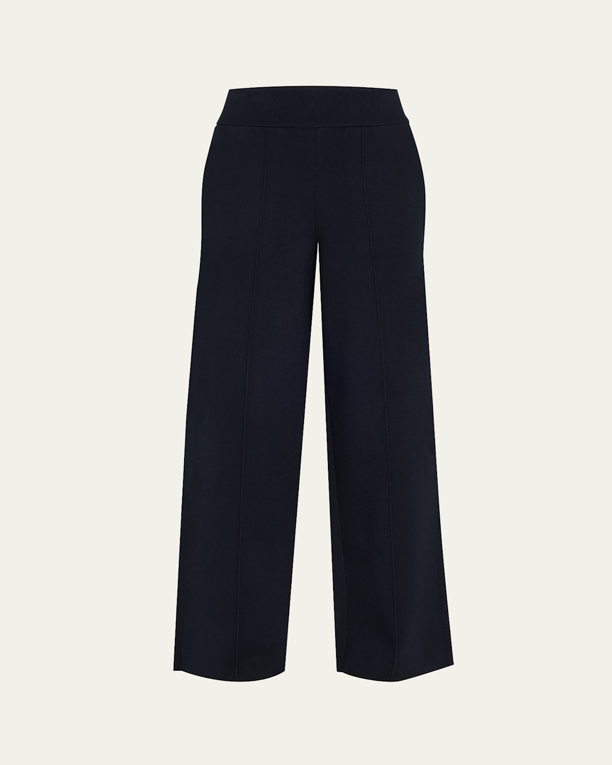 A.L.C. "Corey" knit pants elevated with a pintuck front High rise Elastic waistband Fourpocket style Wide legs Full length Pullon style Viscose/polyester/nylon/polyamide Unlined Dry clean Imported