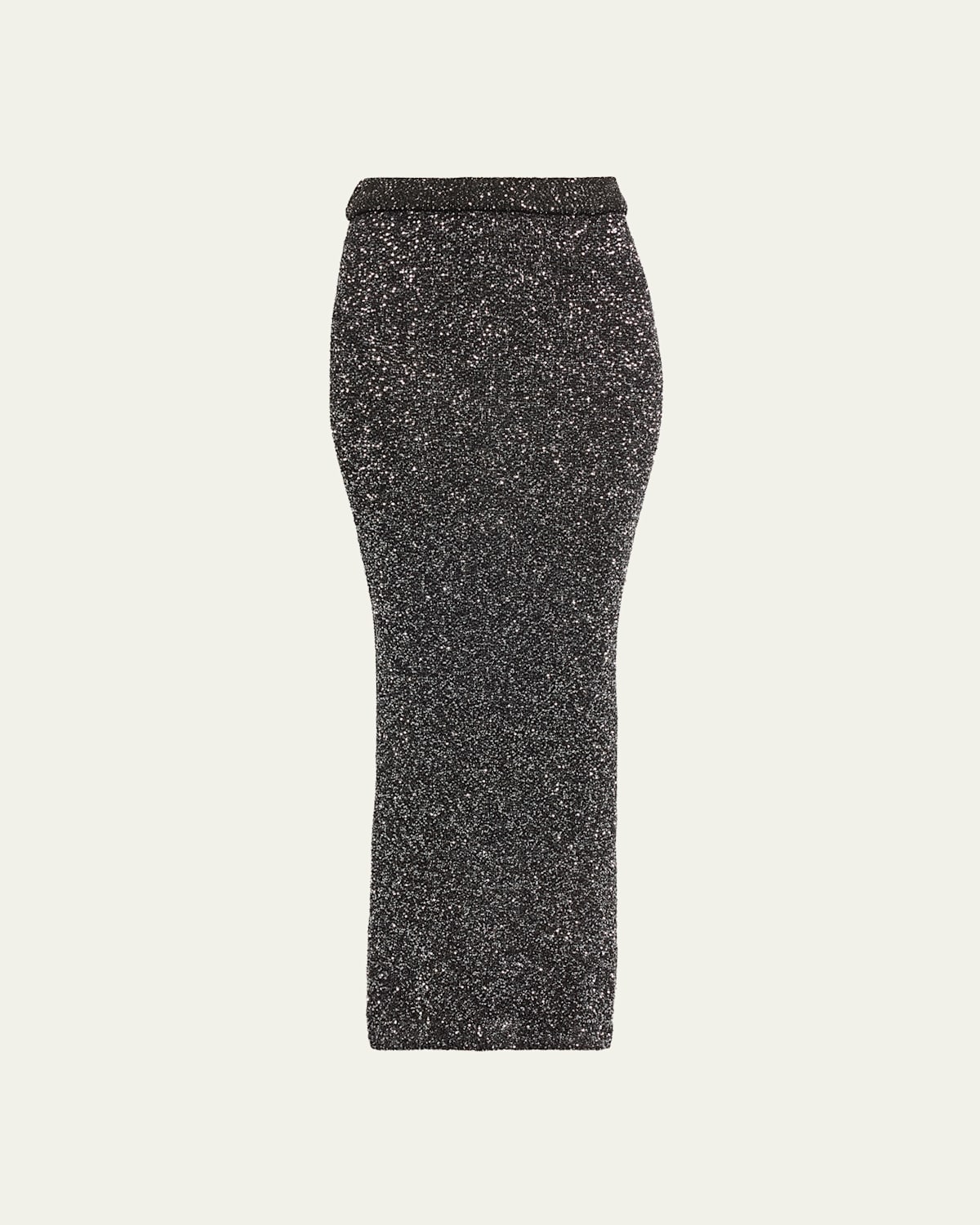 A.L.C. "Dana" sparkly knit midi skirt High rise Elastic waistband Bodycon fit Hem falls below the knee Pullon style Polyester Lining: Rayon Dry clean Imported