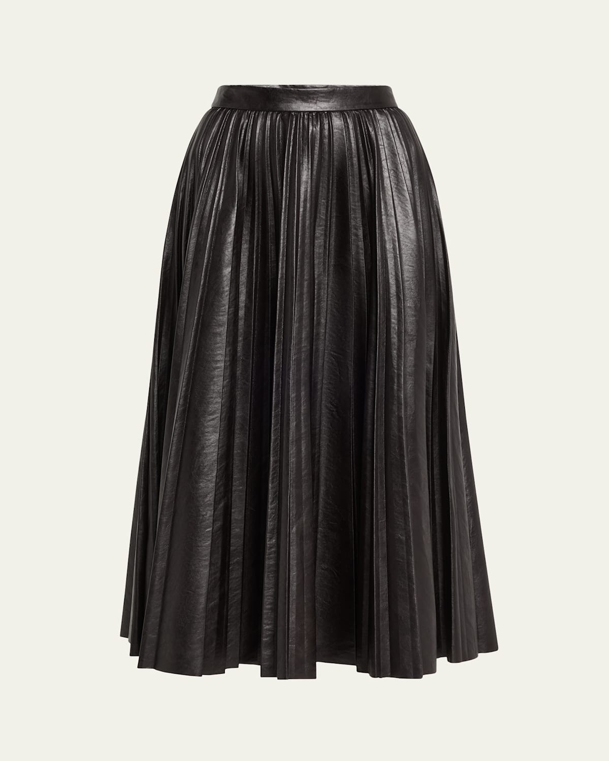 A.L.C. "Etta" faux leather skirt finished with pleating High rise Aline silhouette Hem falls below the knee Side zip Polyurethane/viscose/polyester Unlined Dry clean Imported