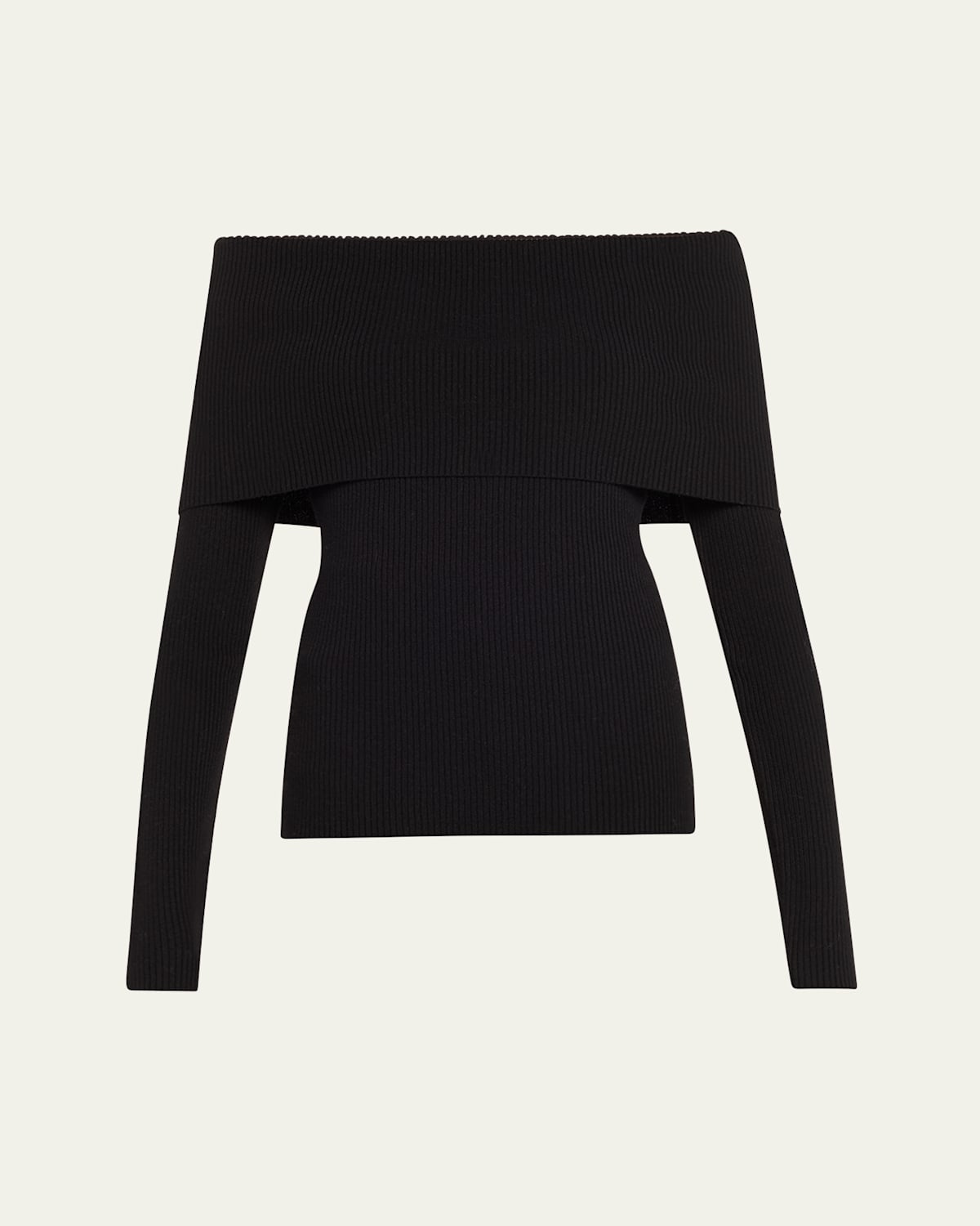 A.L.C. "Evelyn" ribbed foldover top Offtheshoulder neckline Long sleeves Slim fit Pullover style Merino wool/polyester Dry clean Imported