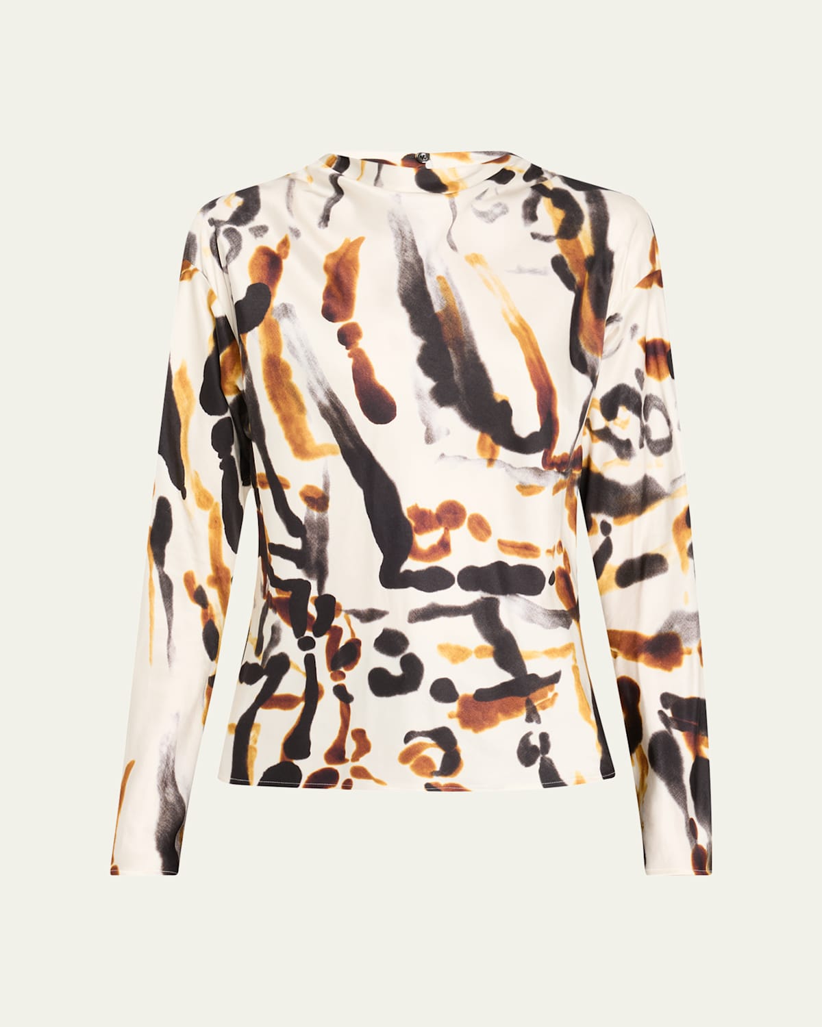 Cut on the bias from satin viscose, the "Georgia" top by A.L.C. features an abstract print that is perfect for daytonight styling. Cowl neckline Long sleeves Classic fit Hem sits at the hip Back keyhole closure Viscose Dry clean Imported