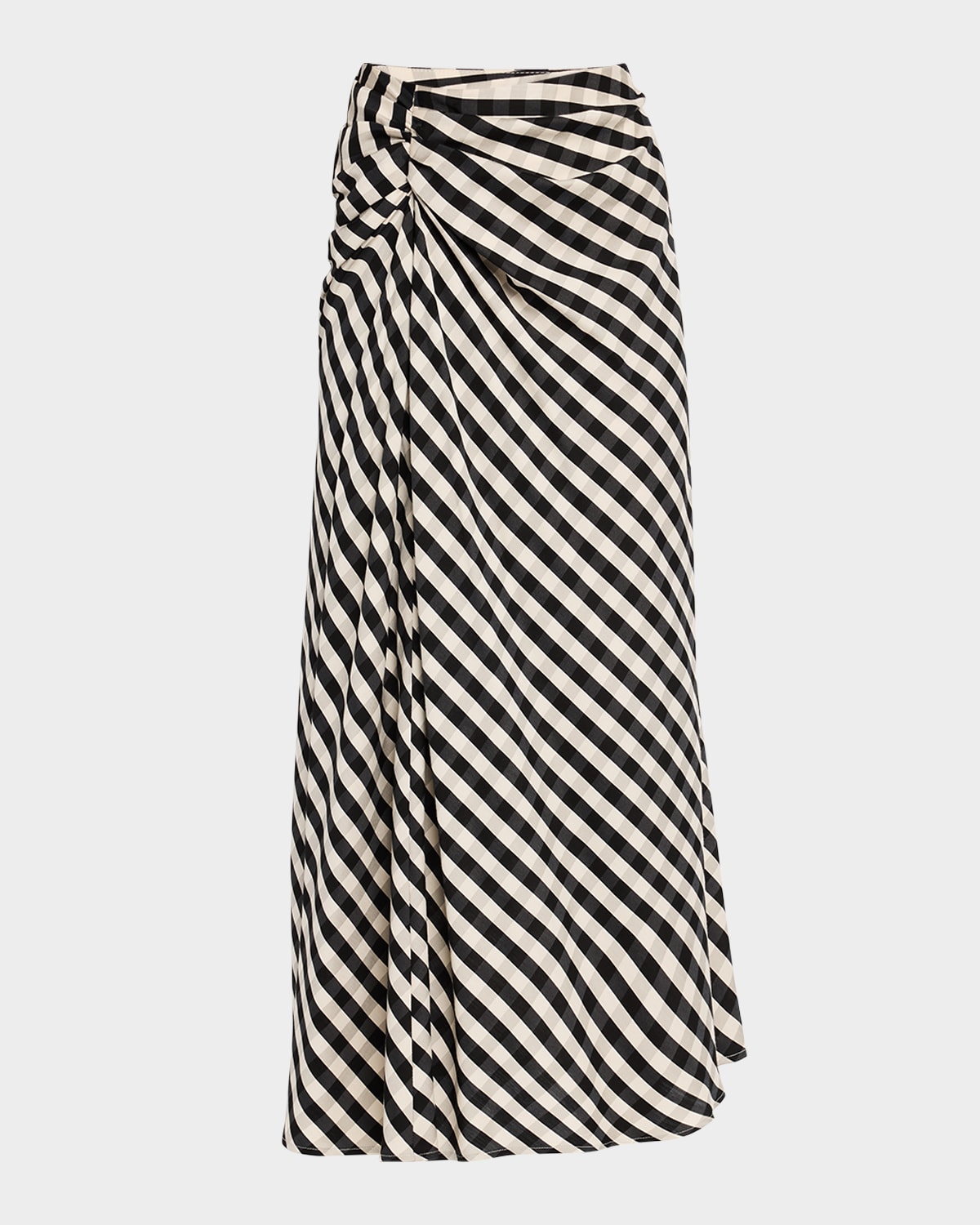 A.L.C. "Jean" checkprint midi skirt with gathering High rise Skirt falls straight from hip to hem Hem falls below the knee Side zip Viscose/linen/Tencel® lyocell Unlined Dry clean Imported
