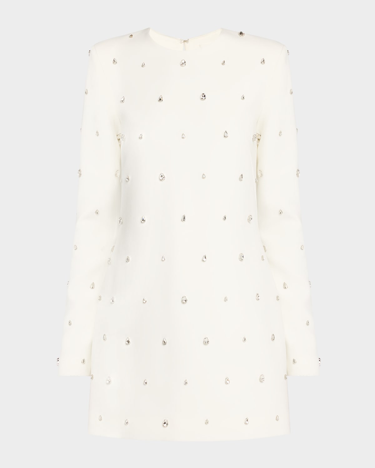 A.L.C. "Kenna" mini dress featuring allover crystal embellishment Crew neckline Long sleeves Shift silhouette Hem falls above the knee Invisible back zip Triacetate/polyester Lining: Elastane/polyester Dry clean Imported