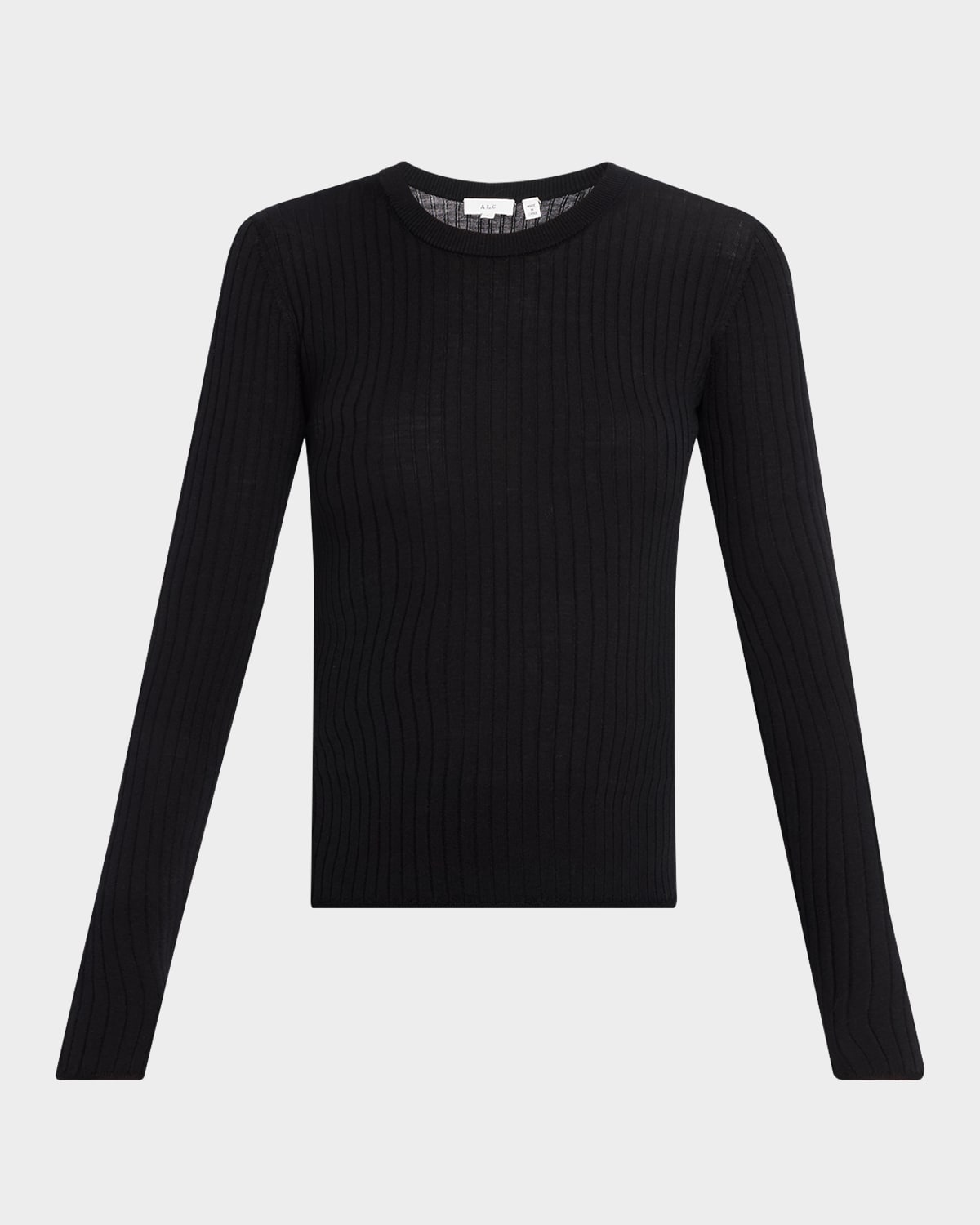 An elevated basic, the "Kyle" top by A.L.C. is designed from ribbed wool for a textural finish Crew neckline Long sleeves Slim fit Hip length Pullover style Wool Imported