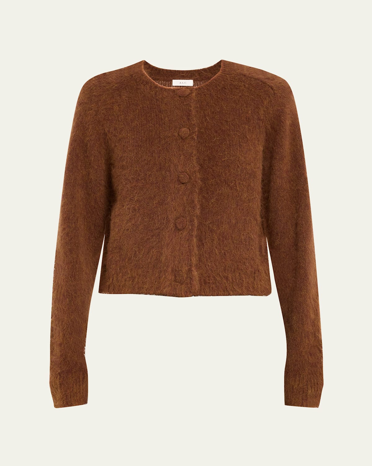 Crafted in a brushed alpaca wool blend, the "Lainie" cardigan by A.L.C. has a luxurious hand feel with a timeless silhouette. Round neckline Long raglan sleeves Classic fit Hem sits at the hip Buttonfront Wool/merino wool Dry clean Imported