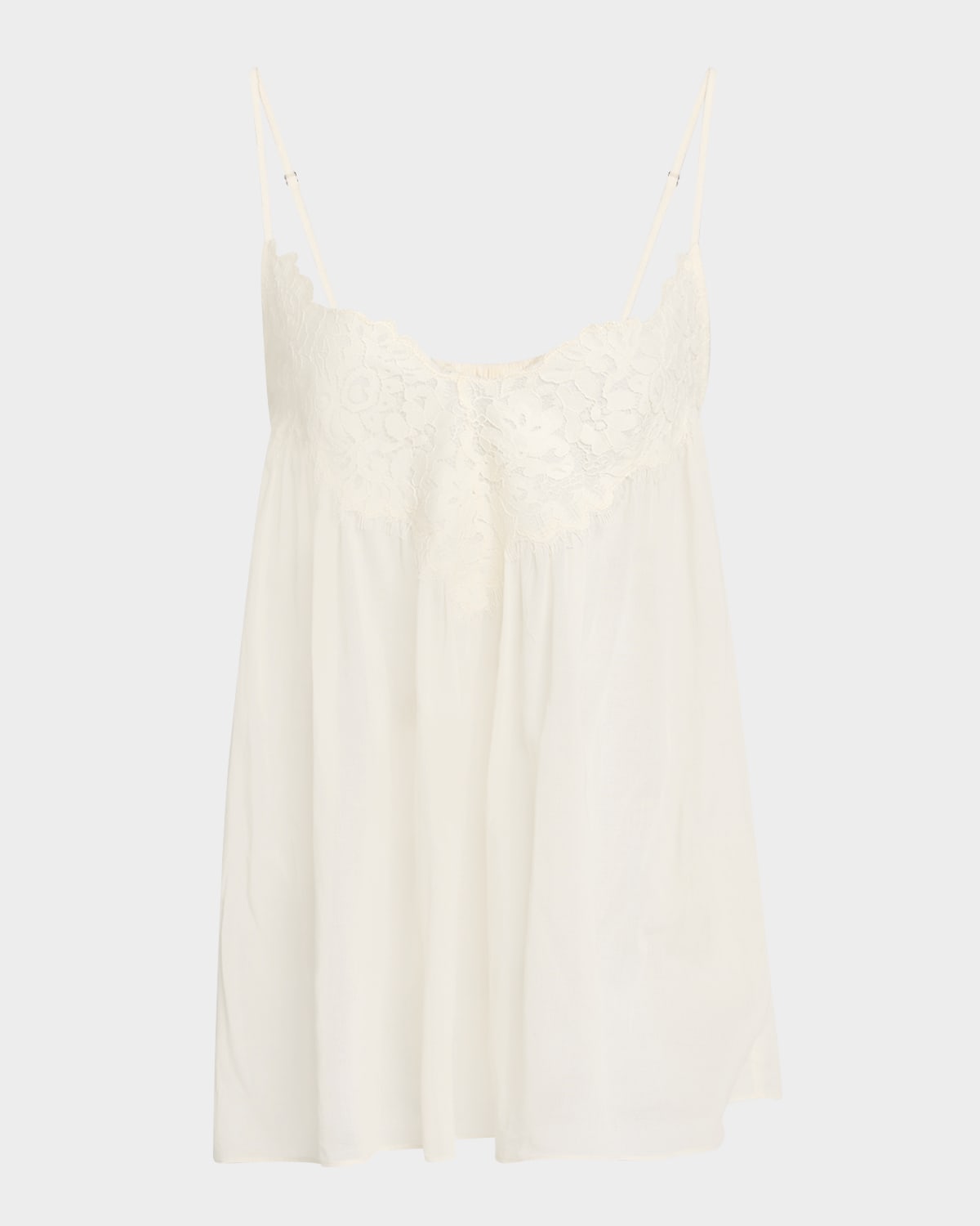 A.L.C. "Macy" cami with tonal lace trim Sweetheart neckline Adjustable spaghetti straps Loose fit Hem falls to the hip Pullover style Cotton Unlined Dry clean Imported