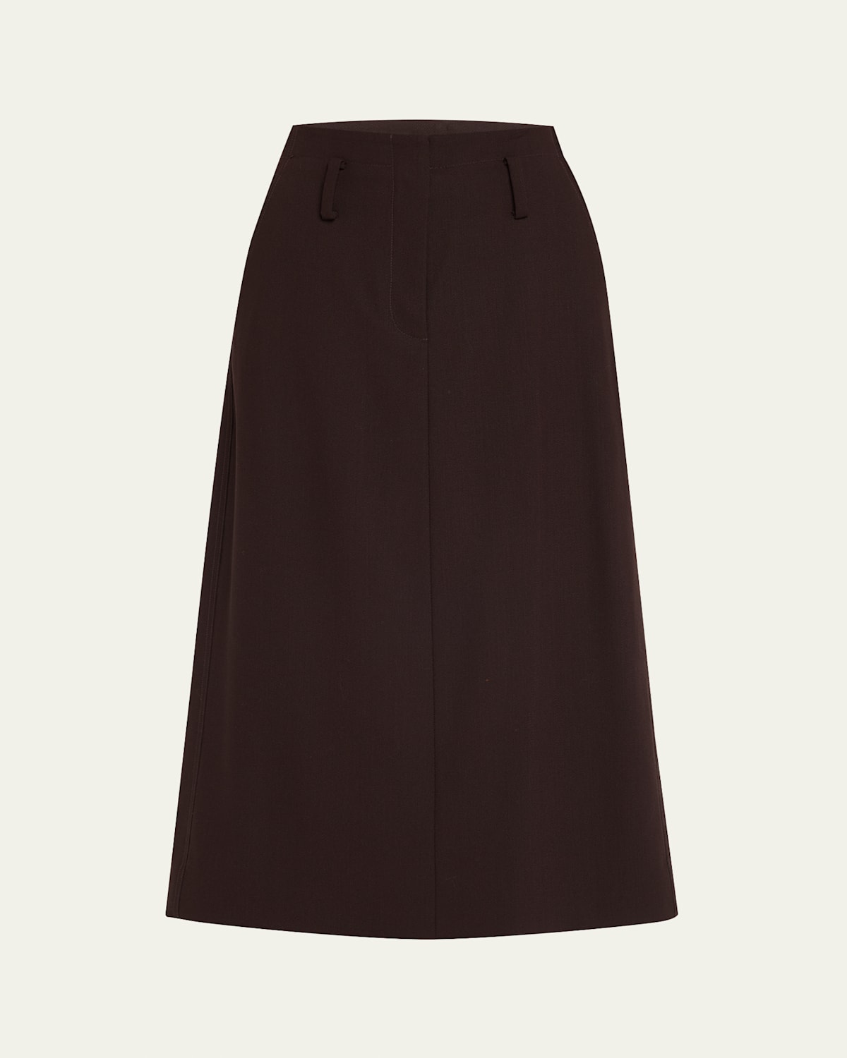 A.L.C. "Milan" tailored woolblend skirt High rise Slanted side and back welt pockets Hem falls below the knee Aline silhouette Button/zip fly; belt loops Wool/viscose/polyester Lining: Cotton/polyester Dry clean Imported