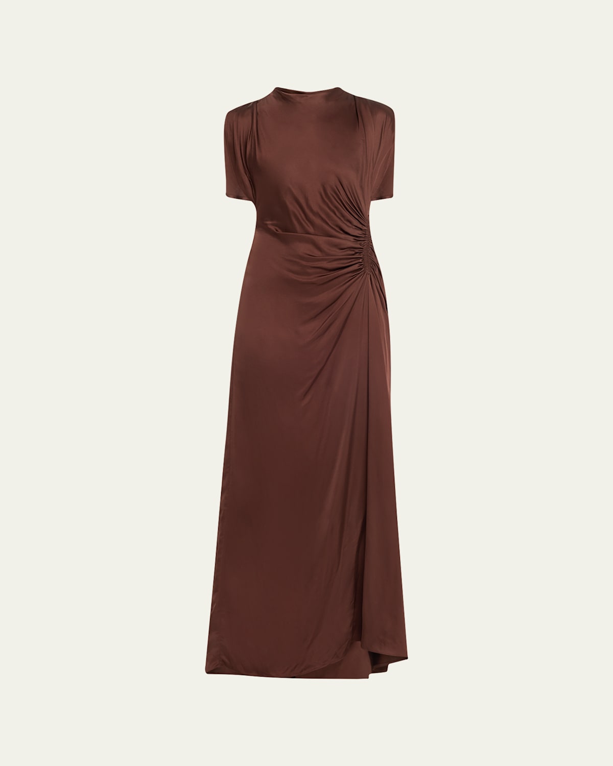 A.L.C. "Nadia" gown featuring short petal sleeves and ruching at the waist in polyester High cowl neckline Aline silhouette Full length; side slit Invisible back zip Polyester Dry clean Imported