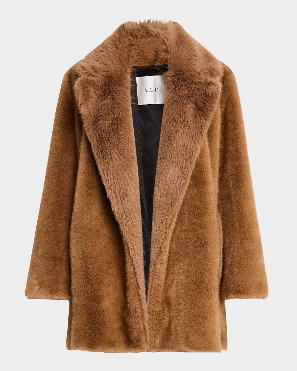A.L.C. "Nina" faux fur jacket featuring a widenotch collar Long sleeves Side pockets Classic fit Hem falls to the hip Front hook closure Polyester Lining: Cotton/polyester Dry clean Imported