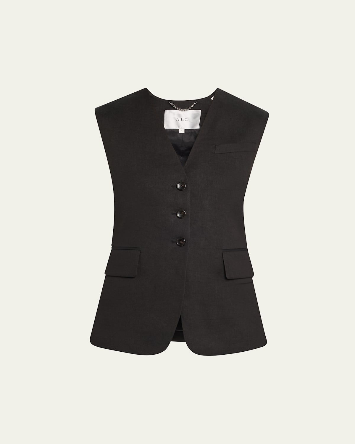 A.L.C. "Noa" linenblend vest finished with an adjustable laceup back V neckline Sleeveless Chest welt pocket Hip flap pockets Tailored fit Buttonfront Linen/cotton/elastane Lining: Cotton/polyester Dry clean Imported