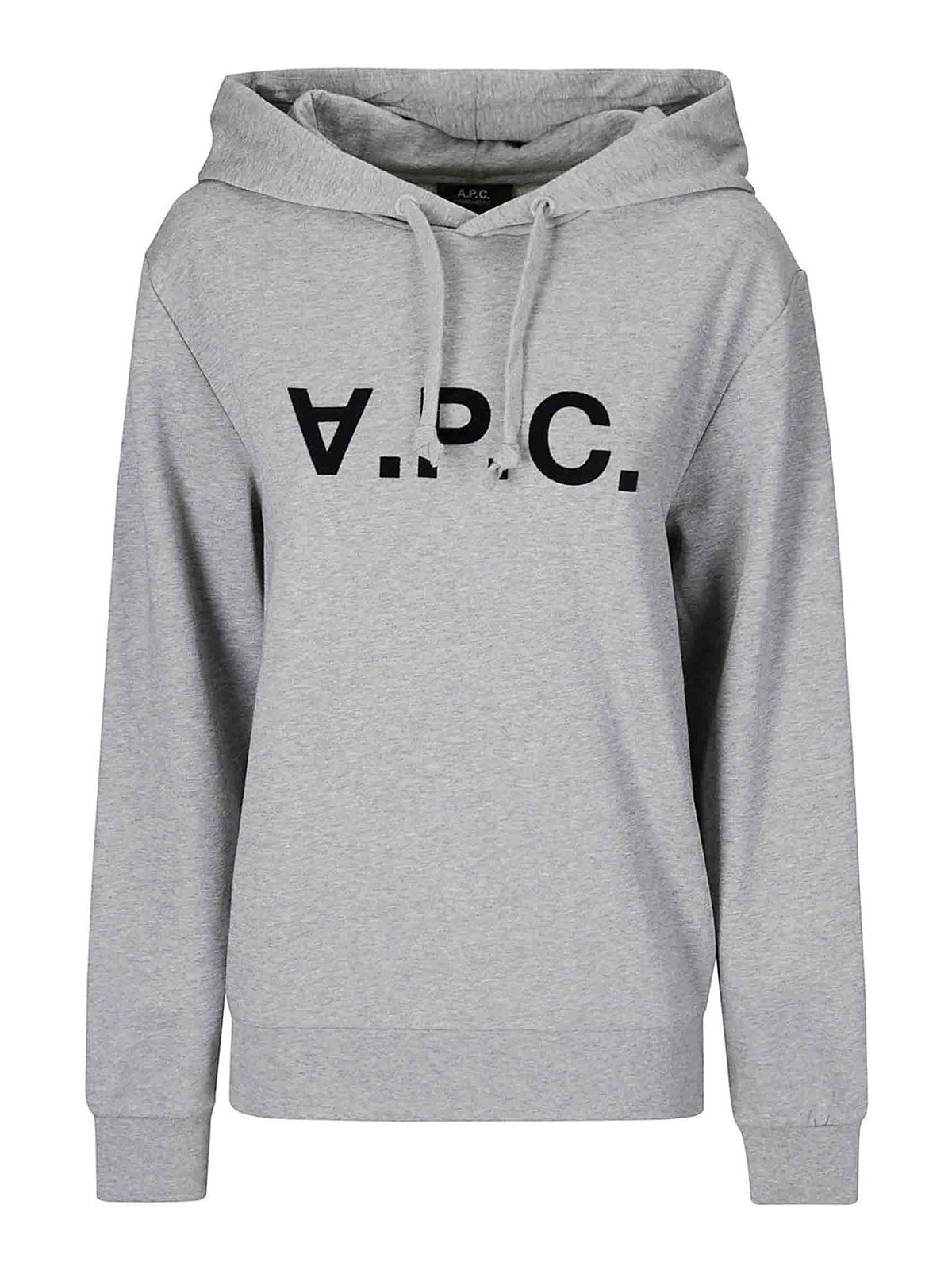 Sweat-shirt gris avec capuche confortable, logo sur le devant en velours biologique