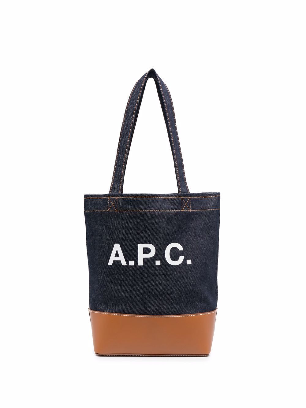 blue / brown leather / denim two shoulder straps logo print to the front internal zip pocket