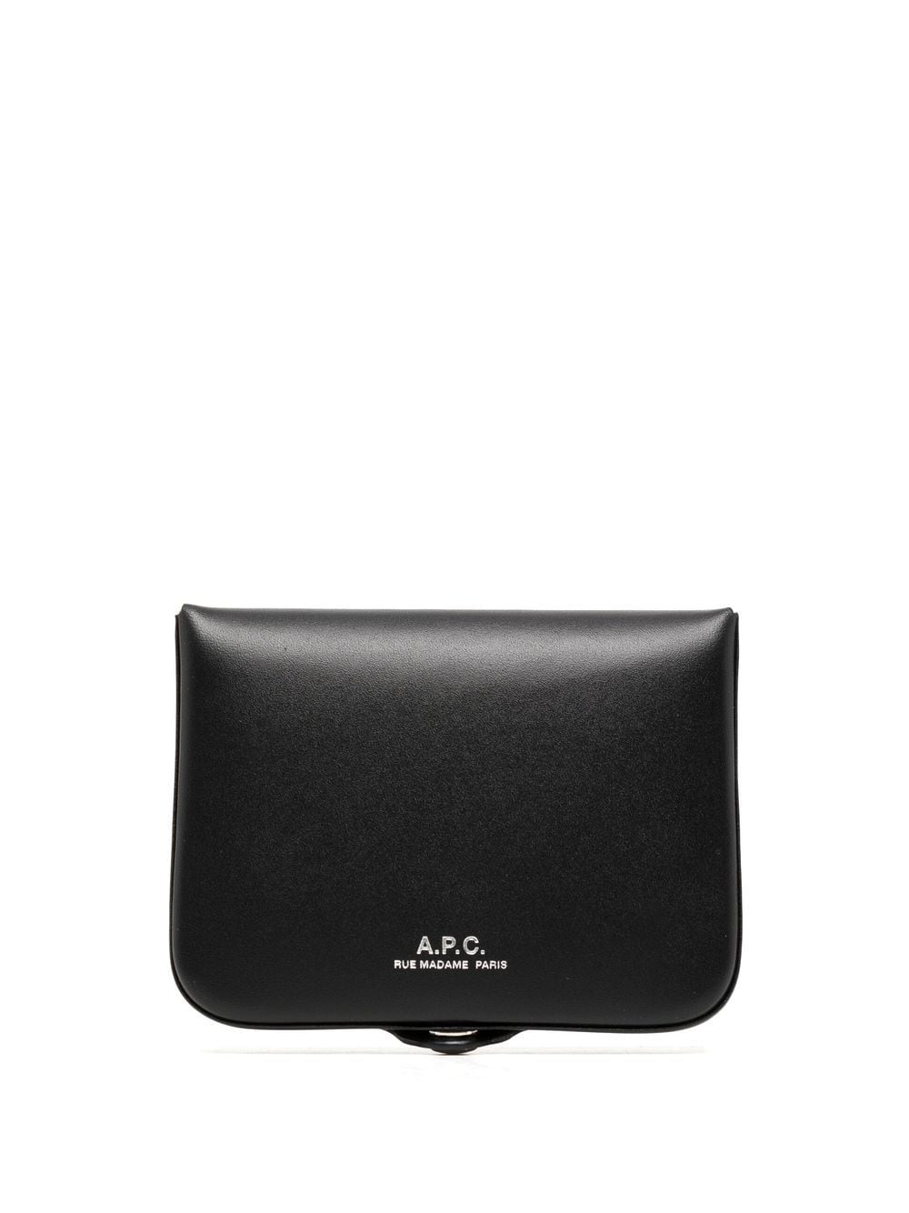 black leather debossed logo to the front button fastening internal card slots coin pocket