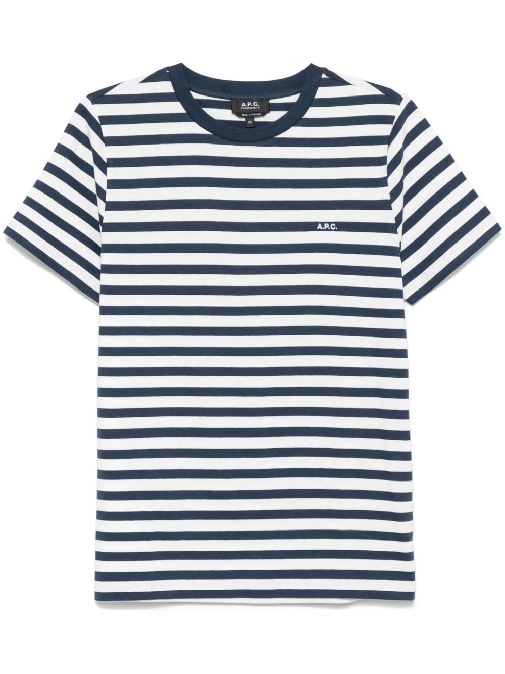 blue/white cotton jersey texture horizontal stripe pattern crew neck short sleeves embroidered logo at the chest straight hem When buying this unisex item, keep in mind that it is graded in standard men's sizing.