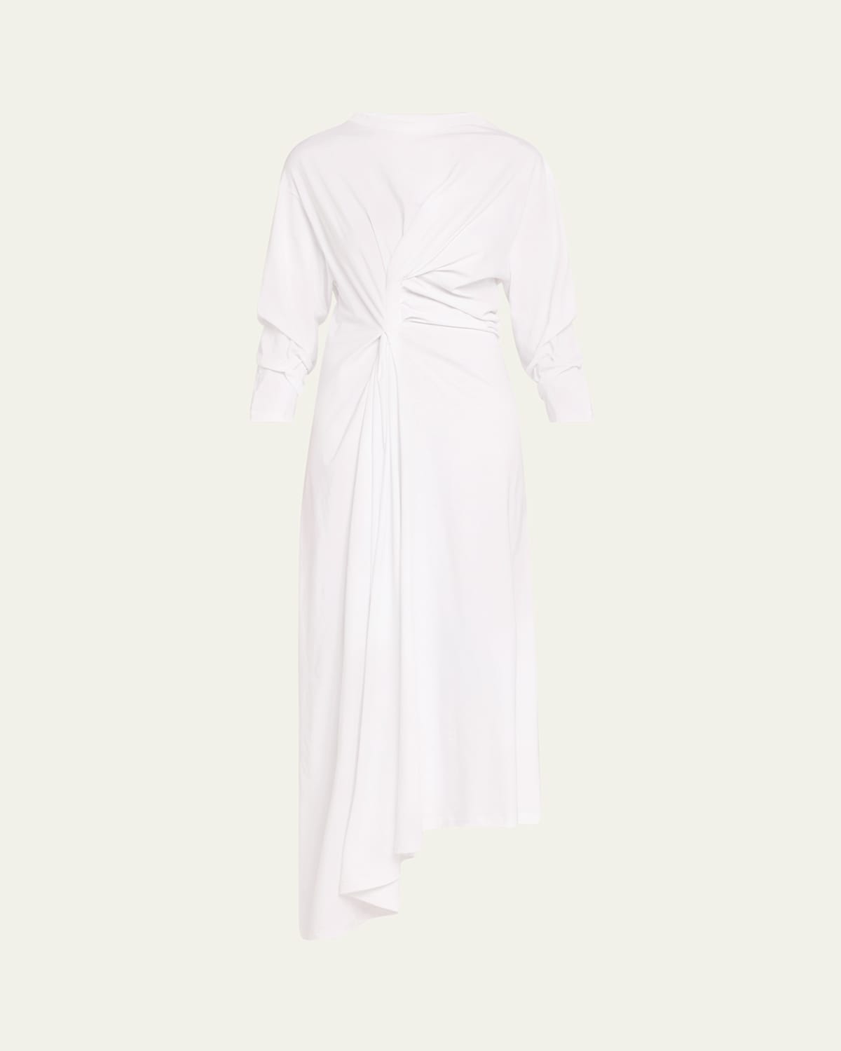 A.W.A.K.E. MODE jersey maxi dress finished with a knotted bodice Crew neckline Dropped shoulders Long sleeves; approx. 17.5"L Draped silhouette Asymmetric hem Slipover style Organic cotton Dry clean Imported