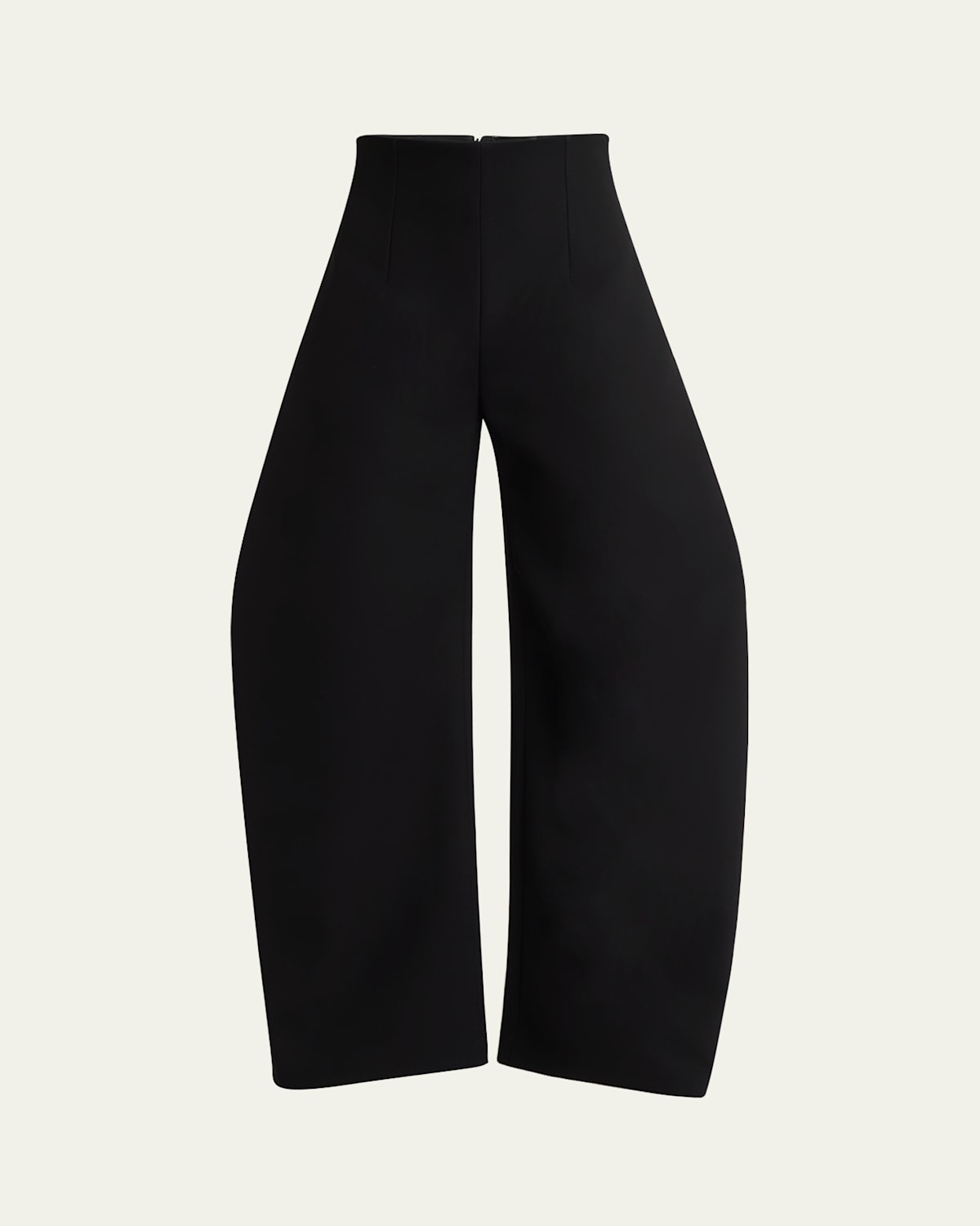 A.W.A.K.E. MODE roundleg trousers with subtle stretch Ultra high rise Side seam pockets Tailored fit Full length Invisible back zip Polyester/elastane Dry clean Imported