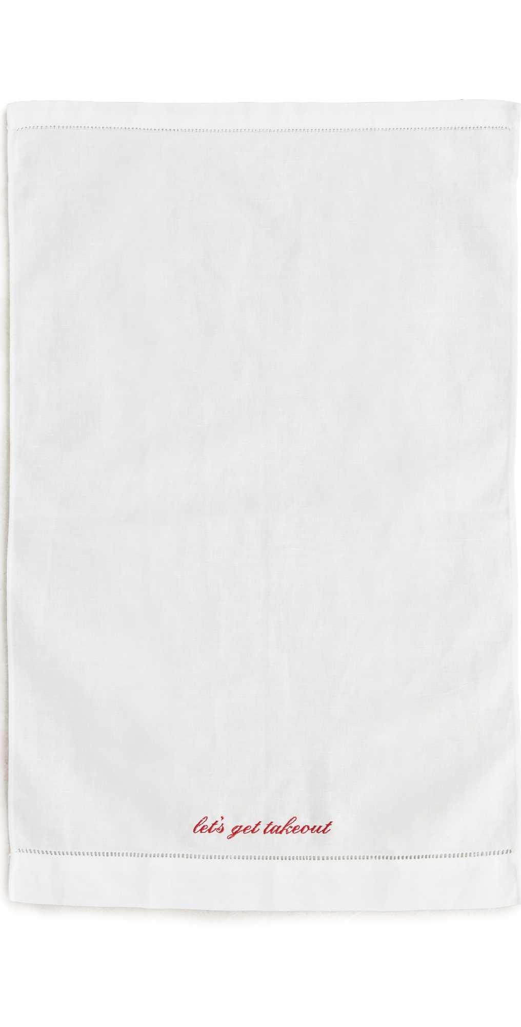 Leather: Linen weave. Embroidered 'Let's Get Takeout' lettering. Shell: 55% linen/45% cotton. Wash cold. Imported, China. Measurements: Width: 14.25in / 36cm Length: 22in / 56cm