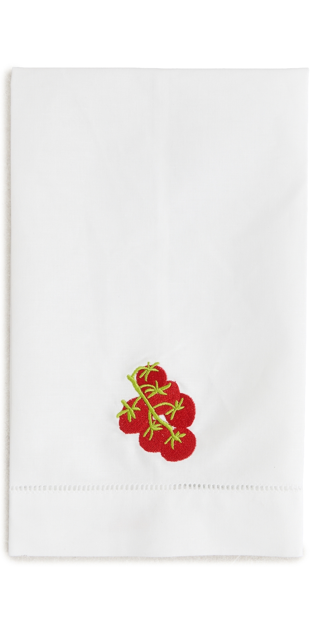 Leather: Linen weave. Embroidered tomatoes. Shell: 55% linen/45% cotton. Wash cold. Imported, China. Measurements: Width: 14.25in / 36cm Length: 22in / 56cm