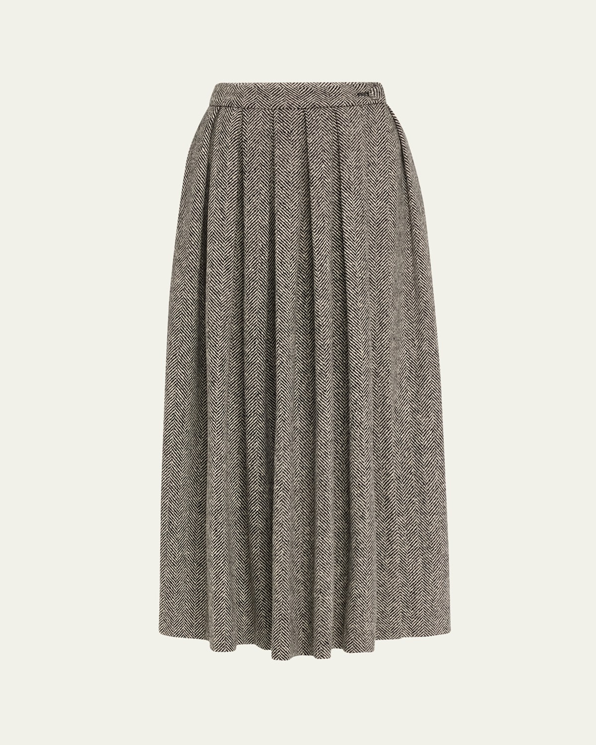 Adam Lippes herringbone ball skirt with pleated detail Midi length Aline silhouette Side slip pocketes Wool Dry clean Made in USA from imported materials