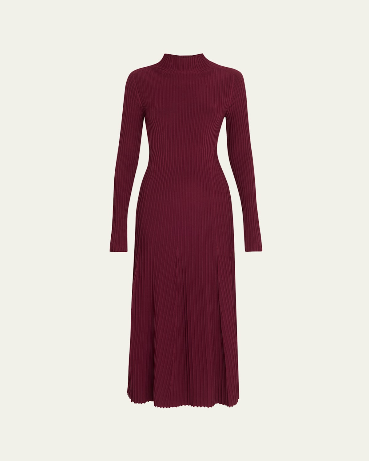 Adam Lippes "Tabitha" dress in ribbed knit Turtleneck Long ralgan sleeves Aline silhouette Hem falls below the knee Slipover style Viscose Dry clean Imported