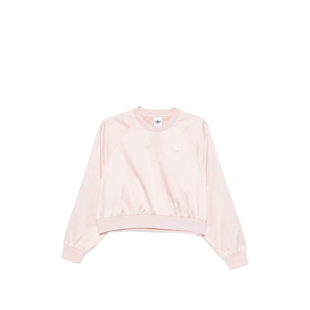 pink textured sleeves round neck long sleeves logo detail ribbed hem