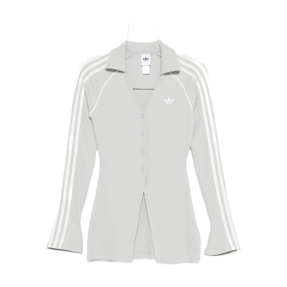 grey 3-Stripes detail button fastening polo collar long sleeves logo detail