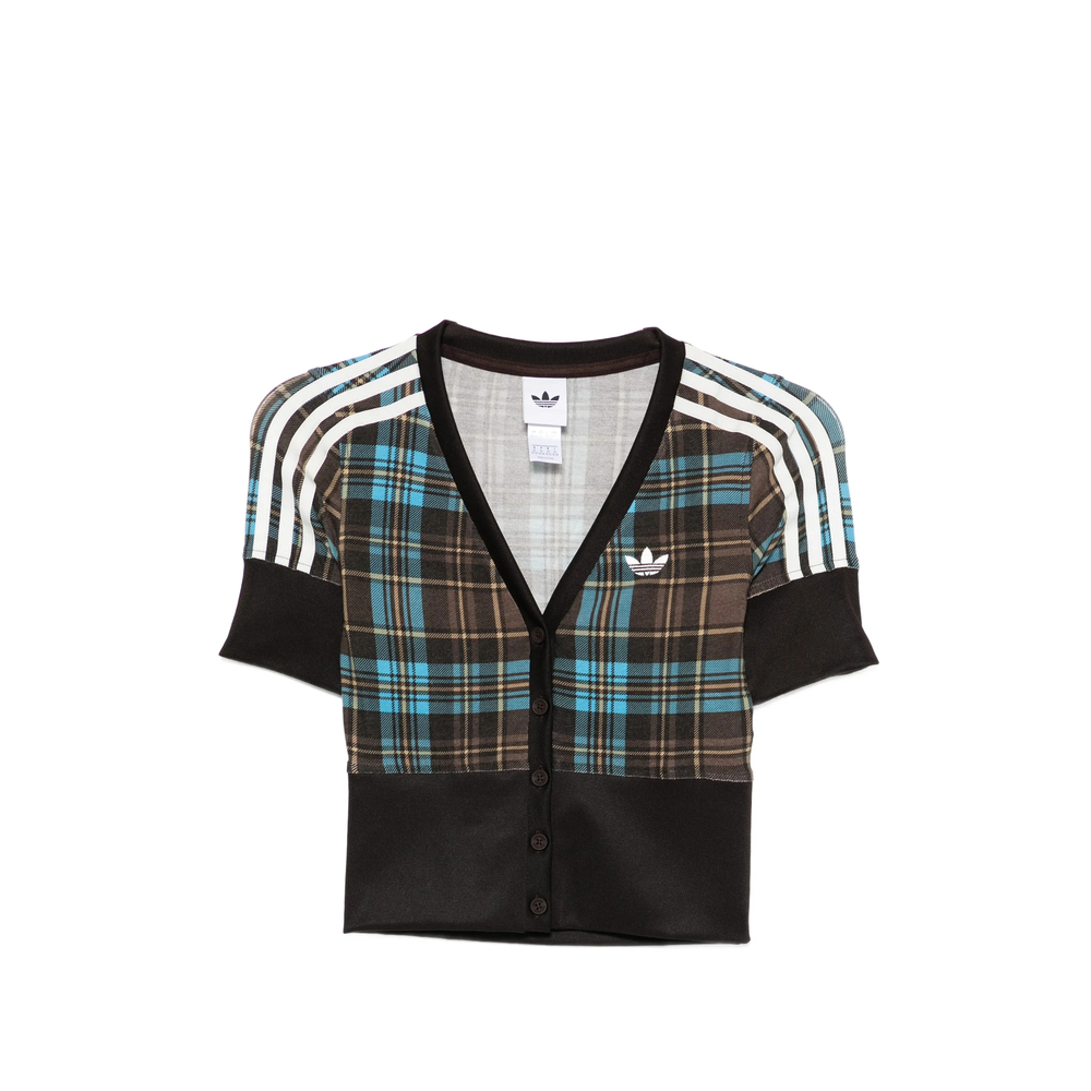 blue/multicoloured check pattern stripes detail v-neck button fastening logo detail