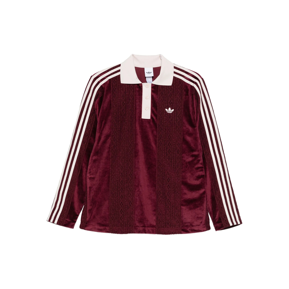 maroon red stripes detail lace detail button fastening polo collar logo detail