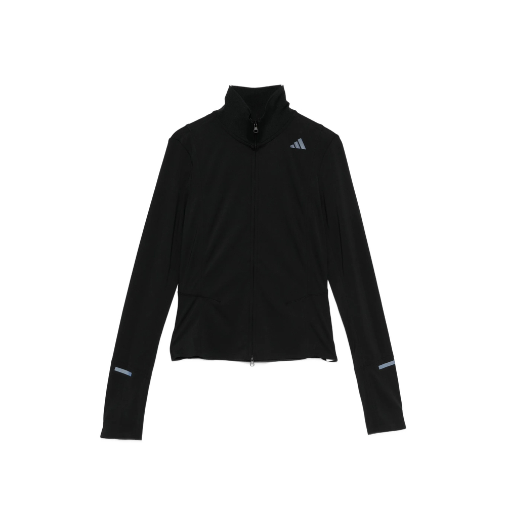 black high neck front zip fastening long sleeves logo print