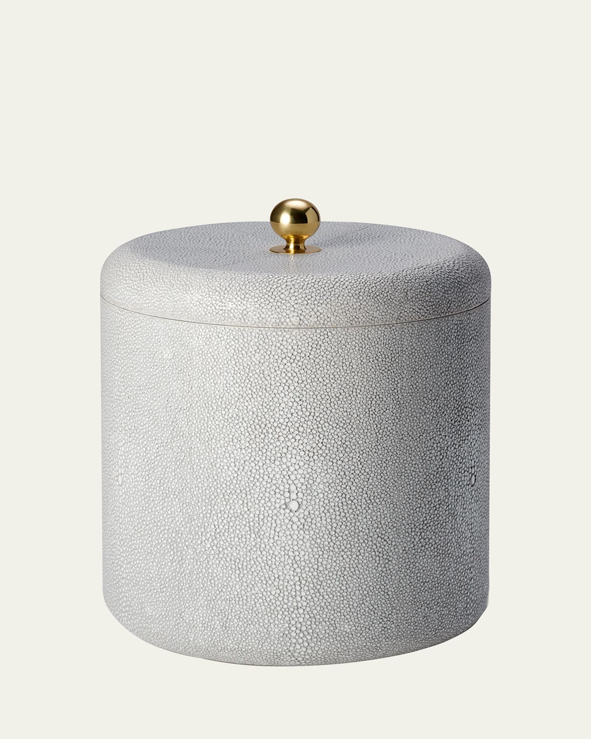Faux faux shagreen (embossed resin) ice bucket with brass hardware. Inner, 8.3"Dia. Imported.