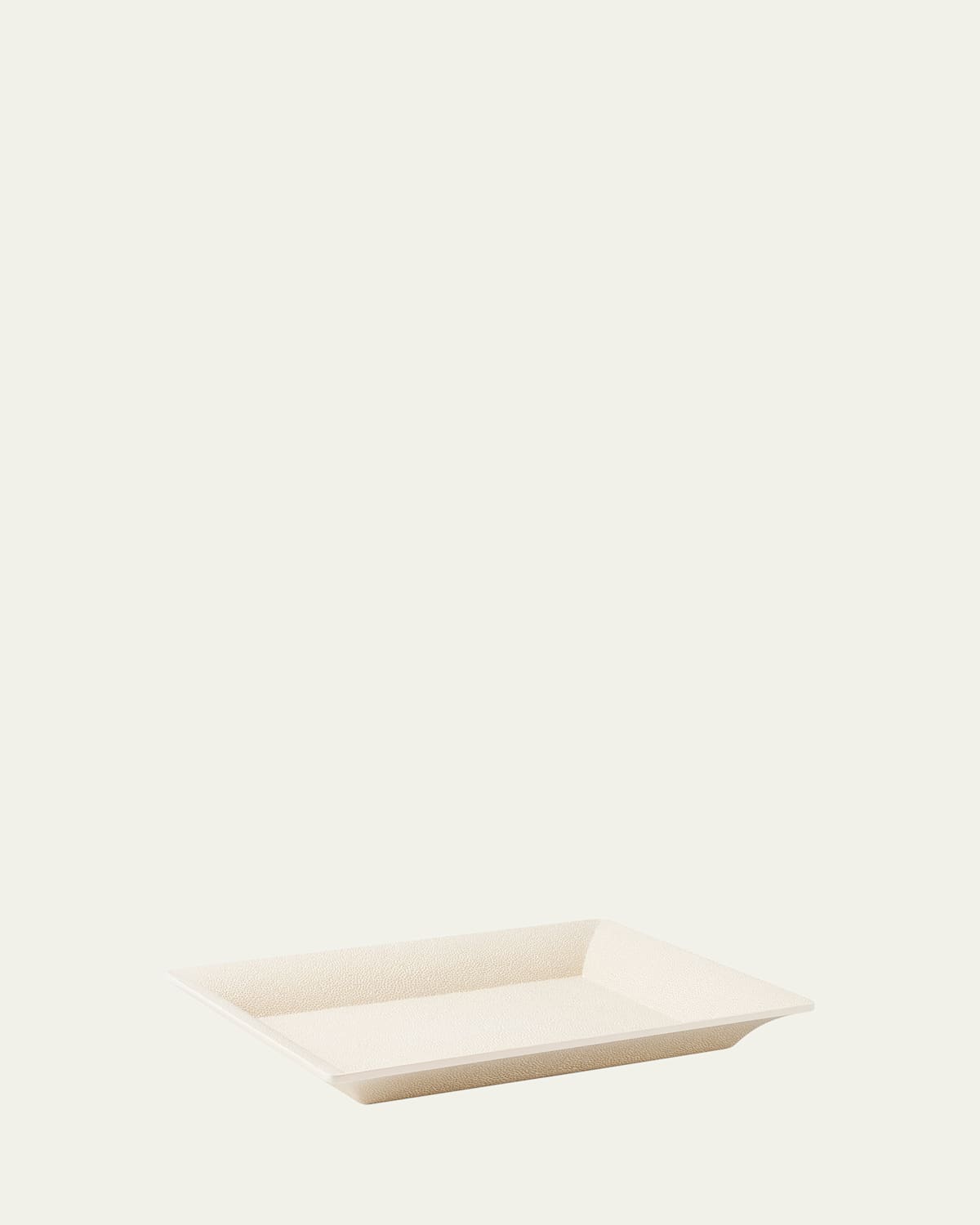 Tray handcrafted of faux shagreen Approx. 12.2"L x 9.9"W x 2.6"T Sold individually. Item Weight (Lbs.): 1.5 Wipe clean Imported