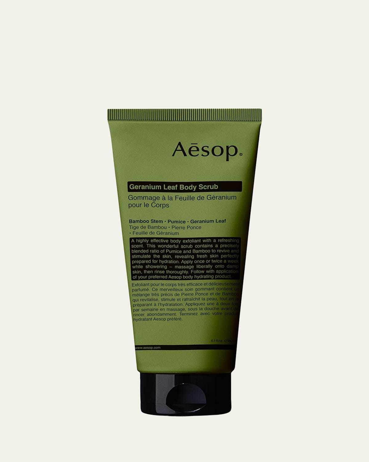 An invigorating blend of Pumice, Bamboo Stem, and purifying botanical oils that sloughs away tired cells and leaves skin cleansed and smooth, perfectly prepared for hydration. How to Use: Once or twice weekly, massage onto soaked skin from neck to toe, then rinse thoroughly. Key Ingredients: Bamboo Stem, Pumice, Geranium Leaf 6.1 oz. / 180