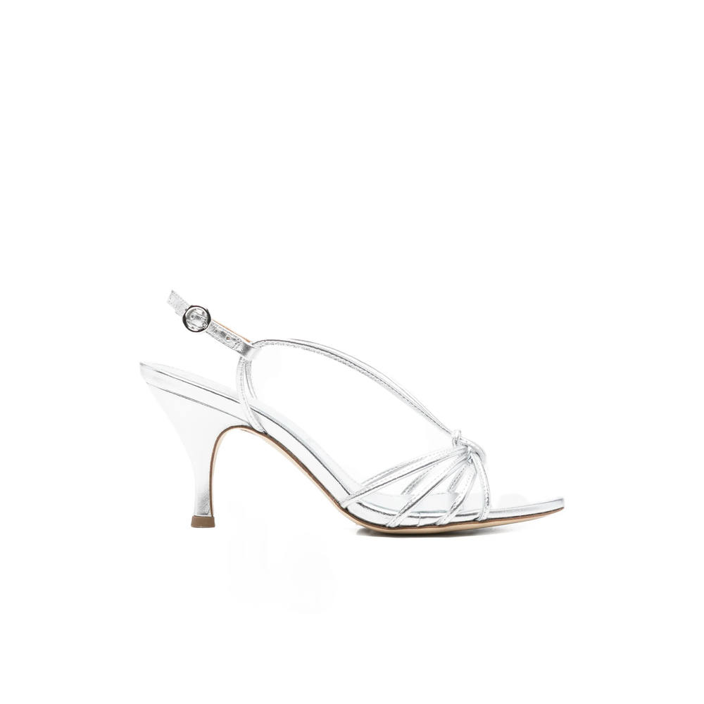 silver-tone strappy design knotted detail open toe slingback strap buckle fastening
