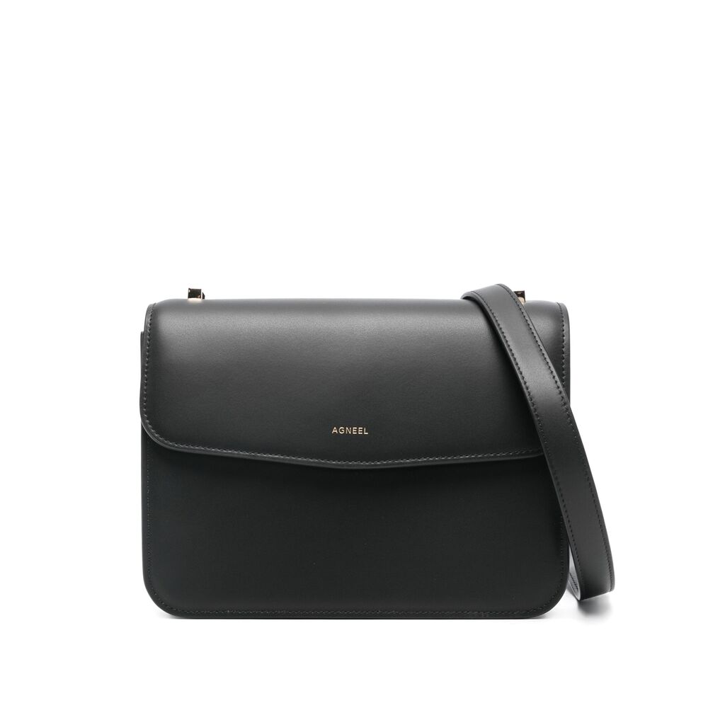 black calf leather foldover top with magnetic fastening adjustable shoulder strap logo stamp to the front partitioned compartment internal patch pocket suede lining accordion design This piece comes complete with a protective dust bag.