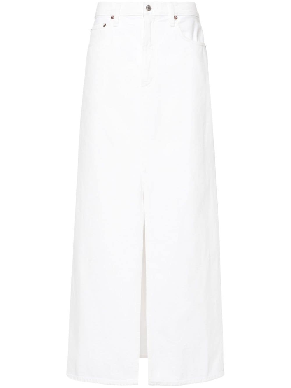 milk white cotton denim belt loops classic five pockets front slit unlined front button and zip fastening