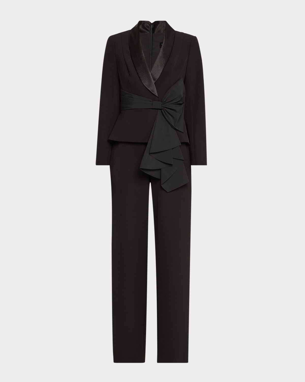 Straight-Leg Bow Stretch Crepe Jumpsuit