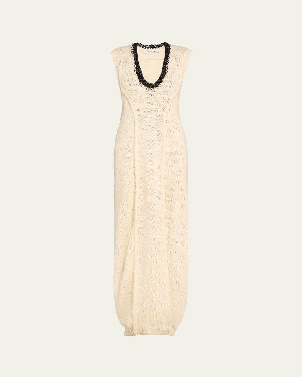 Long Leather-Trim Crochet Wool Cocoon Dress