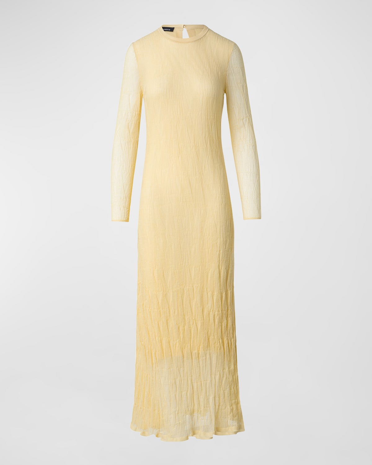 Akris Asagao 3D jacquard knit midi dress with a semisheer fine gauge finish Round neckline Long sleeves Full length Fitted Cotton/nylon/polyamide Made in Switzerland