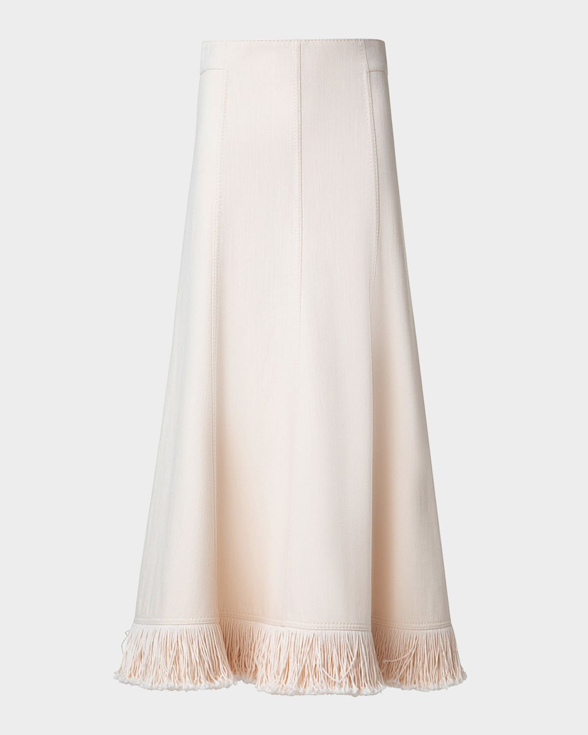Fringe-Hem Cotton-Wool Denim Midi Skirt