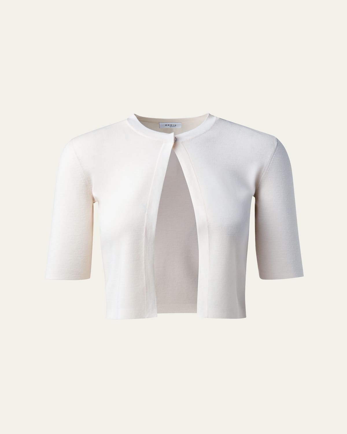 Akris knit cardigan in stretch silk Split round neckline with single button Open front Half sleeves Fitted silhouette Straight hem Cotton/elastane Imported