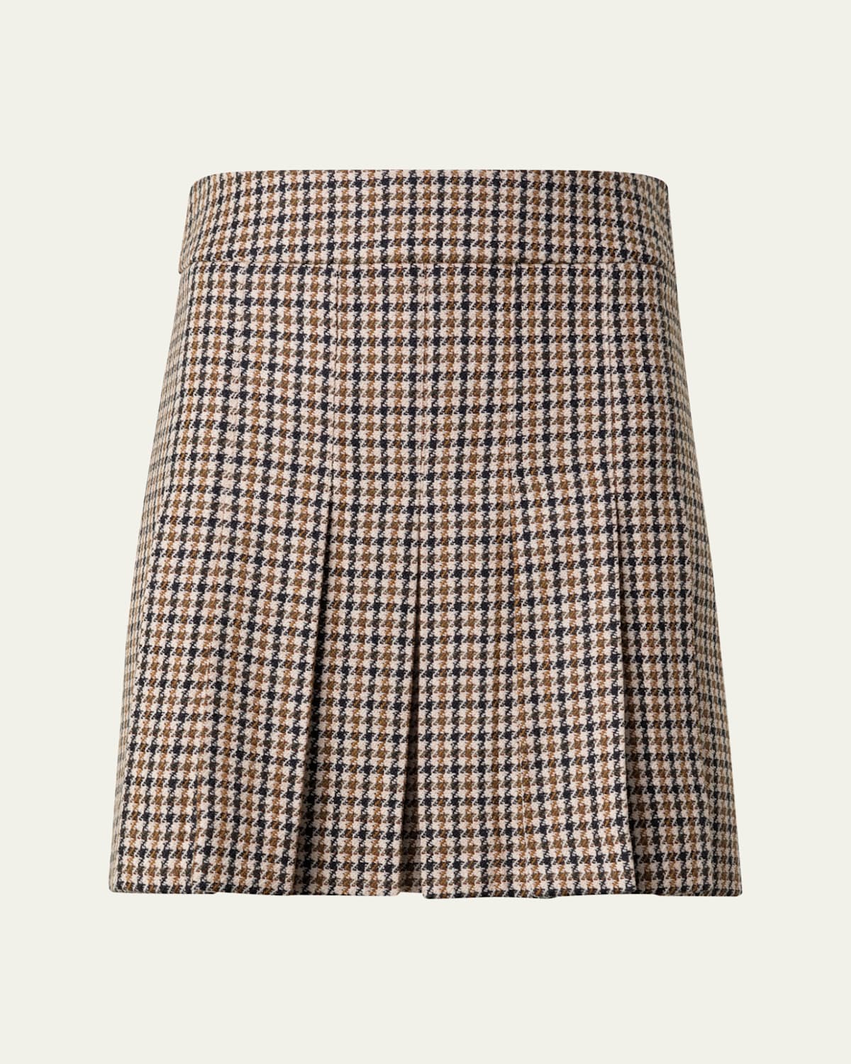 Houndstooth Shetland Tweed Pleated Mini Skirt