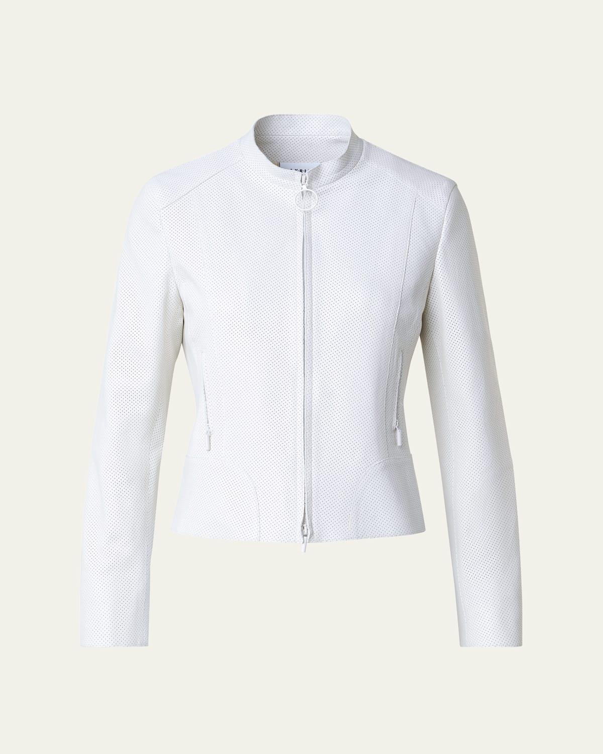 Akris punto napa lambskin leather biker jacket Standup collar; twoway zip front Long sleeves; slit cuffs Straight fit Side zip pockets Cupro lining Made in Romania