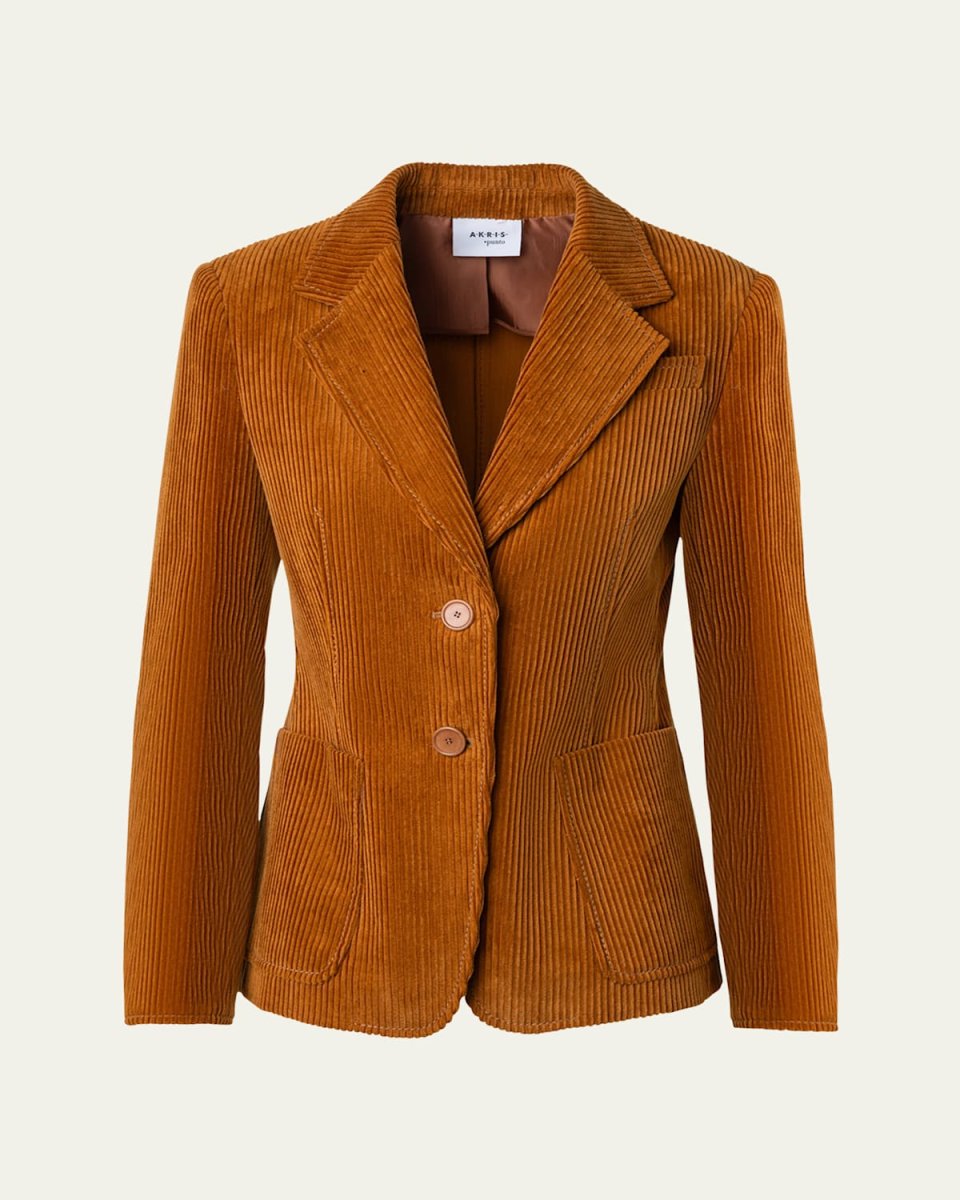Akris punto washed corduroy jacket Notched lapels; button front Long sleeves; slit cuffs Structured shoulders Chest patch pocket; hip patch pockets Tailored fit Cotton Dry clean Made in Romania